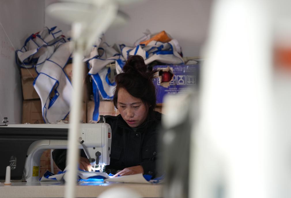 裁縫組正在為布達(dá)拉宮縫制藏式門簾。新華社記者 晉美多吉 攝