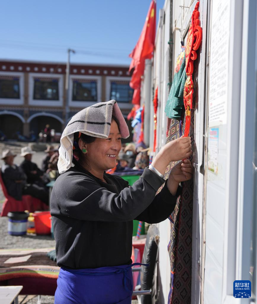 1月26日,拉孜縣吉如村安置點(diǎn)群眾在掛吉祥結(jié)。新華社記者 晉美多吉 攝?