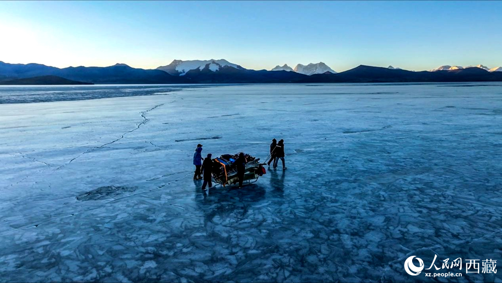 普莫雍錯“冰上趕羊”,是當?shù)啬撩袷来鄠鞯墓爬现腔?。每年冬季,由于推瓦村海拔高、夏季短,草場無法為羊群提供充足的過冬飼料。因此,每年高原最冷的時候,推瓦村牧民會把羊群趕到普莫雍錯水草豐茂的湖心島,依靠島上的草料度過最寒冷的冬期。
