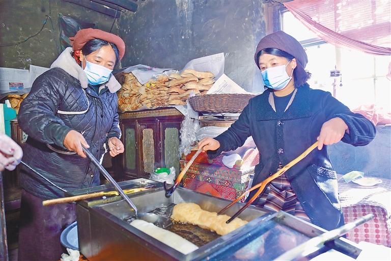 旦索朗一家,在每年藏歷新年前夕,都會(huì)開啟一年中最為繁忙的時(shí)光——經(jīng)營“卡賽”生意。旦索朗回憶往昔,感慨萬千:“小時(shí)候過年,炸‘卡賽’是家家戶戶的頭等大事,整個(gè)村子都彌漫著誘人的香氣,那是新年專屬的味道。如今,時(shí)代在變遷,人們的生活方式也發(fā)生了改變,越來越多的人選擇購買成品‘卡賽’,這既契合了快節(jié)奏的現(xiàn)代生活,也為我們提供了發(fā)展的機(jī)遇。我們經(jīng)營‘卡賽’生意已有6年,這期間,靠著誠信經(jīng)營和對(duì)高品質(zhì)的堅(jiān)守,生意蒸蒸日上,還帶動(dòng)了6名村民共同增收,大家一起用雙手創(chuàng)造美好生活?!?/p>