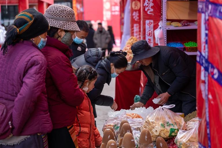 隨著藏歷新年的日益臨近,堆龍德慶區(qū)的“上谷福地·吉慶年貨集市”和蔡公堂便民年貨市場都將持續(xù)為市民們提供優(yōu)質(zhì)的年貨商品和服務(wù),讓大家在歡樂祥和的氛圍中迎接新年的到來,一起熱熱鬧鬧辦年貨,歡歡喜喜過大年。 圖/記者 阿旺尼瑪 桑旦歐珠