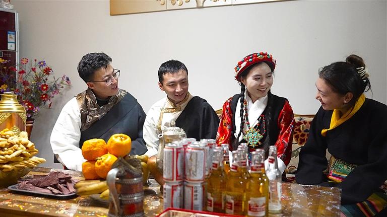 隨著藏歷新年的到來(lái),拉薩這座城市披上了節(jié)日的盛裝,迎來(lái)了五湖四海的游客和本地居民的親朋好友。在這喜慶的氛圍中,民族團(tuán)結(jié)家庭成為一道靚麗的風(fēng)景線。他們跨越民族界限,共同慶祝這一藏族人民重要的傳統(tǒng)節(jié)日。青稞酒、切瑪、卡賽、德卡……家中除了琳瑯滿目的食物外,民族團(tuán)結(jié)與文化交融的溫暖場(chǎng)景更為藏歷新年增添了別樣的熱鬧氛圍。