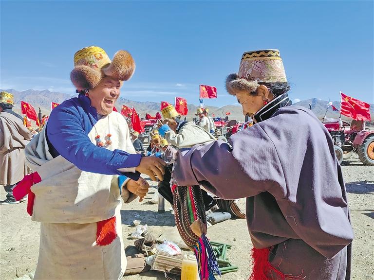 康馬縣婦女敬青稞酒。