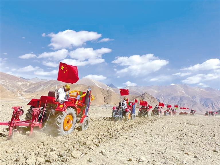 在薩嘎縣旦嘎鄉(xiāng)旦嘎村、薩當(dāng)村,村民們?cè)缭缇奂谔镩g,喝酥油茶、品青稞酒,歡聲笑語中滿是對(duì)新一年豐收的期待。與此同時(shí),現(xiàn)代農(nóng)業(yè)機(jī)械的轟鳴聲回響在田間,勾勒出傳統(tǒng)農(nóng)耕文明與現(xiàn)代農(nóng)業(yè)技術(shù)交融的生動(dòng)圖景。薩當(dāng)村村民次仁多吉感慨地說:“過去,12畝地要全家忙半個(gè)月;如今,有了機(jī)械化助力,僅需3天就能完成。機(jī)械化不僅提高了效率,還解放了勞動(dòng)力?,F(xiàn)在,我有更多時(shí)間外出務(wù)工,增加收入。去年,我們家總收入突破10萬元?!钡└锣l(xiāng)農(nóng)牧綜合服務(wù)中心主任旦真介紹,旦嘎鄉(xiāng)早謀劃、早部署,組織農(nóng)牧技術(shù)人員、科技特派員深入各村持續(xù)開展青稞選種、科學(xué)施肥、灌溉等技術(shù)指導(dǎo),確保今年全鄉(xiāng)農(nóng)業(yè)生產(chǎn)能夠順利開局、穩(wěn)步前行。