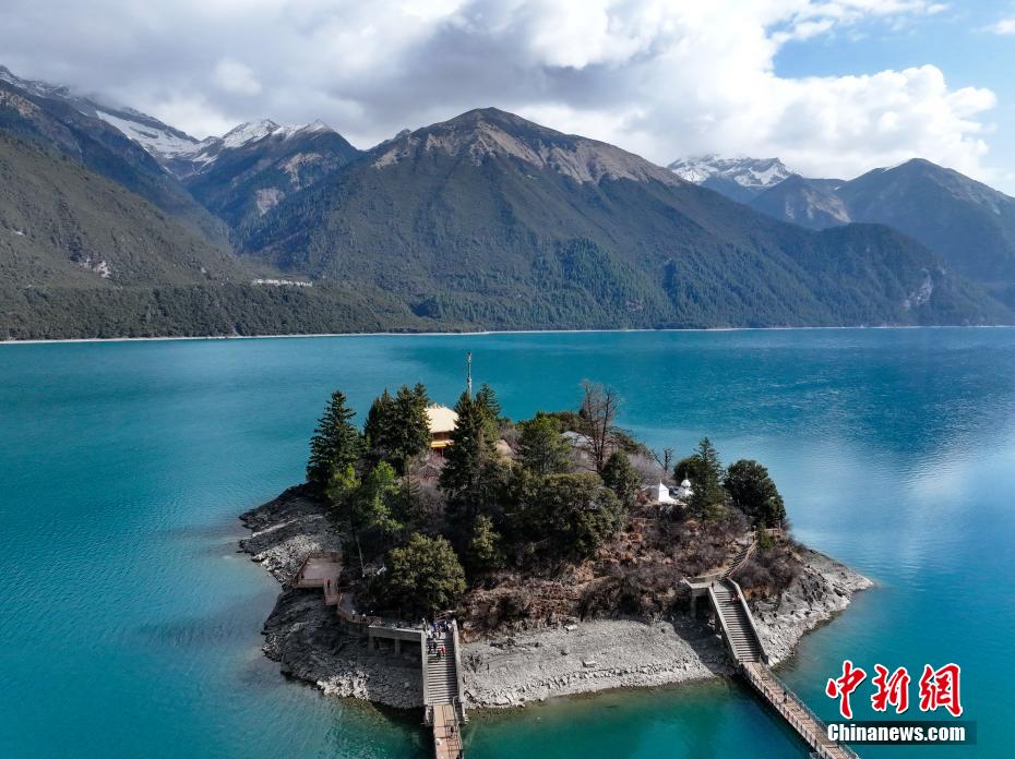 3月30日,航拍巴松措湖心島。巴松措又名錯高湖,位于西藏自治區(qū)林芝市工布江達(dá)縣,是西藏首個自然風(fēng)景類國家5A級旅游風(fēng)景區(qū)。從空中俯瞰巴松措,碧藍(lán)的湖水被雪山、森林環(huán)繞,宛如鑲嵌在群山間的“藍(lán)寶石”。(無人機(jī)照片)中新社記者 馬銘言 攝