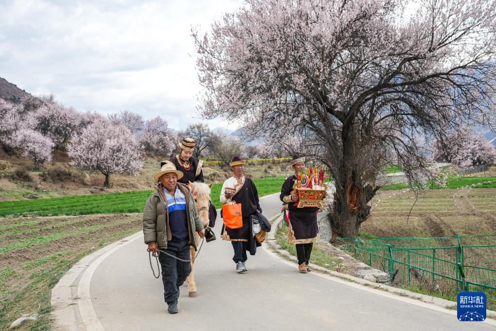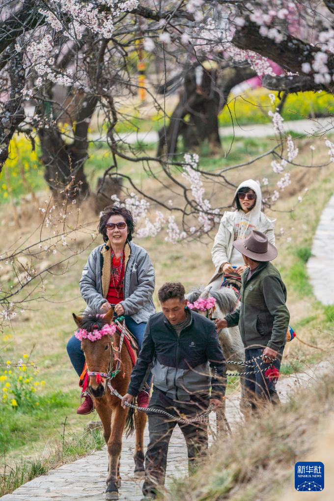 4月2日,游客在林芝市嘎拉村體驗馬背觀花。新華社記者 丁增尼達 攝