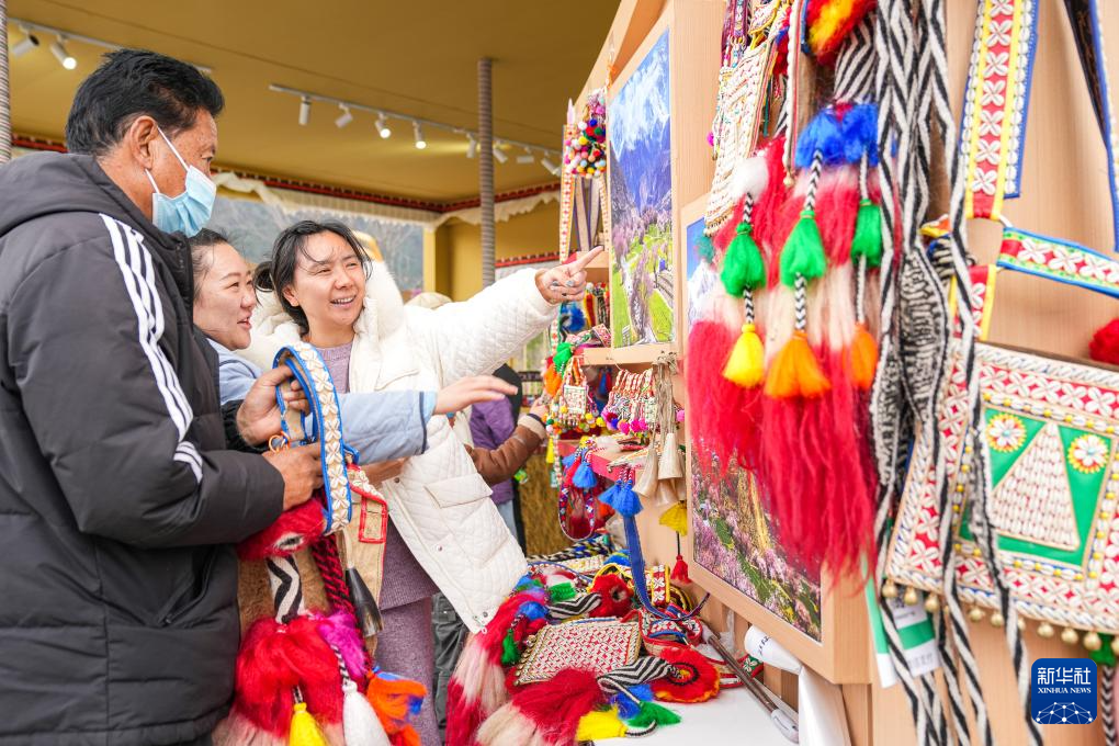 4月3日,游客在林芝市工布公園選購當(dāng)?shù)靥禺a(chǎn)。新華社記者 丁增尼達 攝
