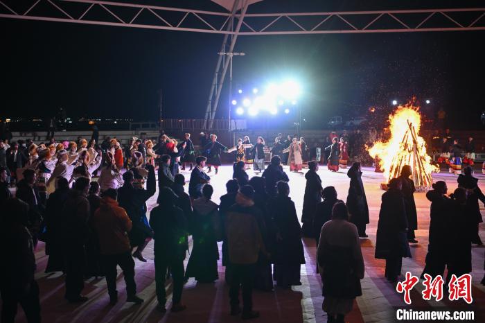 圖為“情定當(dāng)雄”篝火鍋莊晚會(huì)現(xiàn)場(chǎng)。中新社記者 貢嘎來松 攝