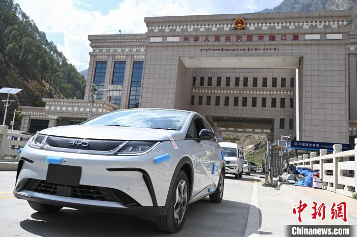 5月25日,在西藏自治區(qū)日喀則市吉隆縣的吉隆口岸,海關工作人員在對出口的國產新能源汽車進行檢查。據統(tǒng)計,今年前4個月,吉隆口岸新能源汽車出口成績亮眼。出口量達1973輛,同比增長13.59% 。中新社記者 貢嘎來松 攝