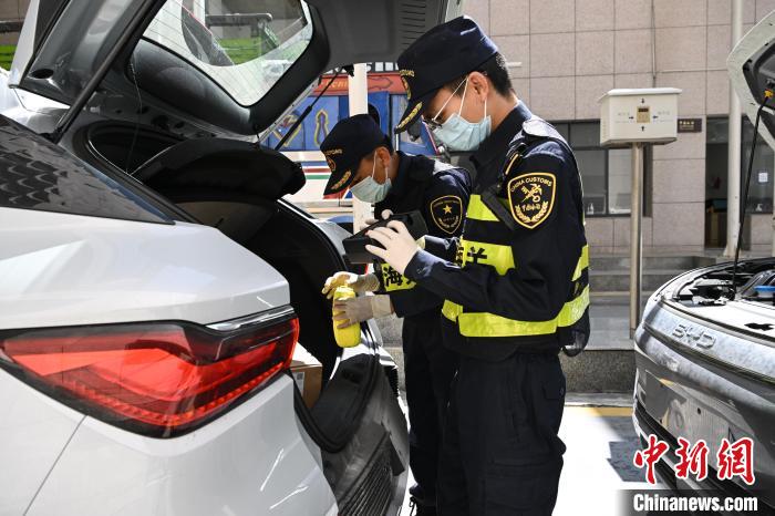 5月25日,在西藏自治區(qū)日喀則市吉隆縣的吉隆口岸,海關工作人員在對出口的國產新能源汽車進行檢查。中新社記者 貢嘎來松 攝