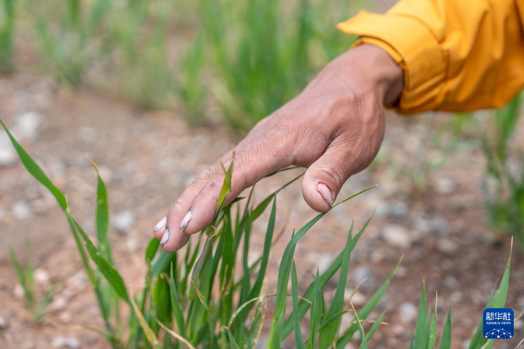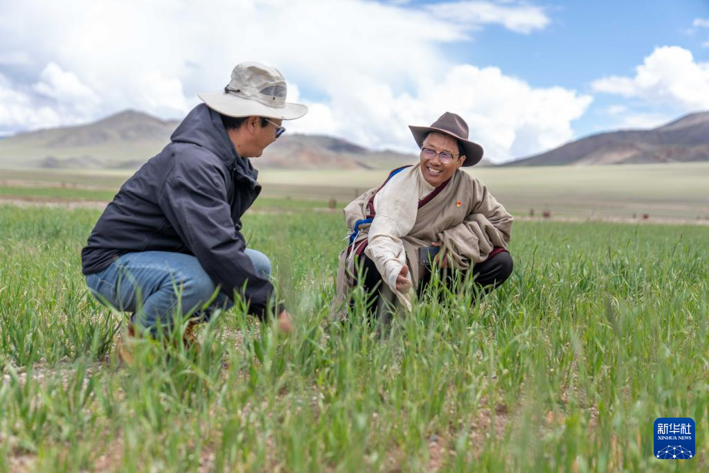 7月20日,村民在看草的長勢。新華社記者 旦增尼瑪曲珠 攝