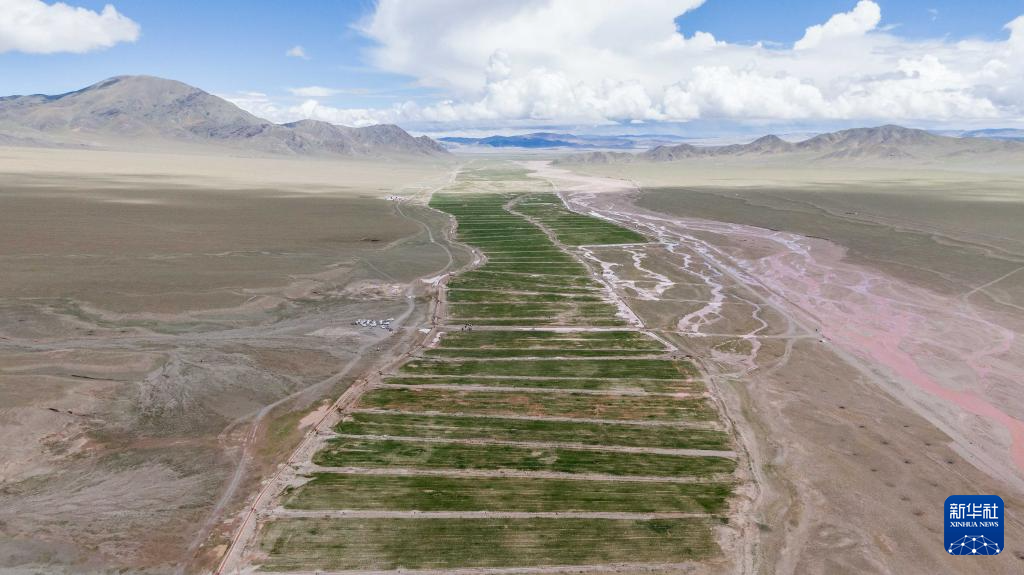 這是7月20日在西藏阿里地區(qū)革吉縣文布當桑鄉(xiāng)拍攝的人工種草基地。新華社記者 旦增尼瑪曲珠 攝 ??