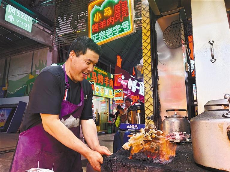 拉薩天海夜市燒烤店內(nèi),店員正在烤肉。記者 旦增蘭澤 攝