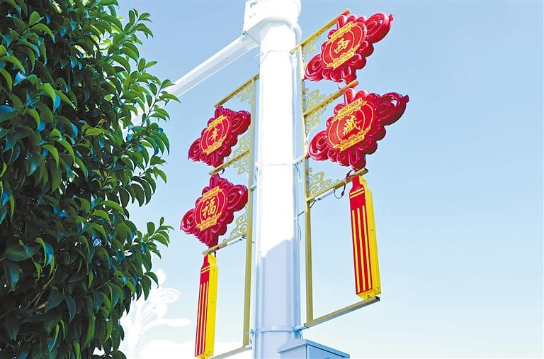 拉薩街頭路燈燈桿上的中國(guó)結(jié)。 記者 王敏 攝