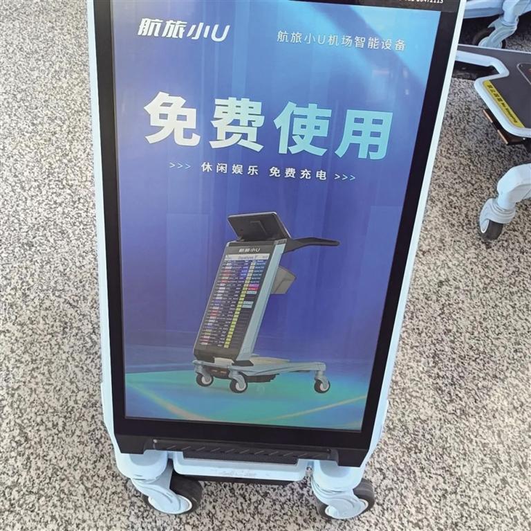 智能屏幕手推車不僅集成導航、航班信息查詢、機場商業(yè)引流等基礎(chǔ)功能,還涵蓋充電、娛樂體驗、目的地服務(wù)前置等多元化服務(wù),操作界面簡潔直觀,精準匹配旅客的各類需求,全面提升旅客出行體驗。