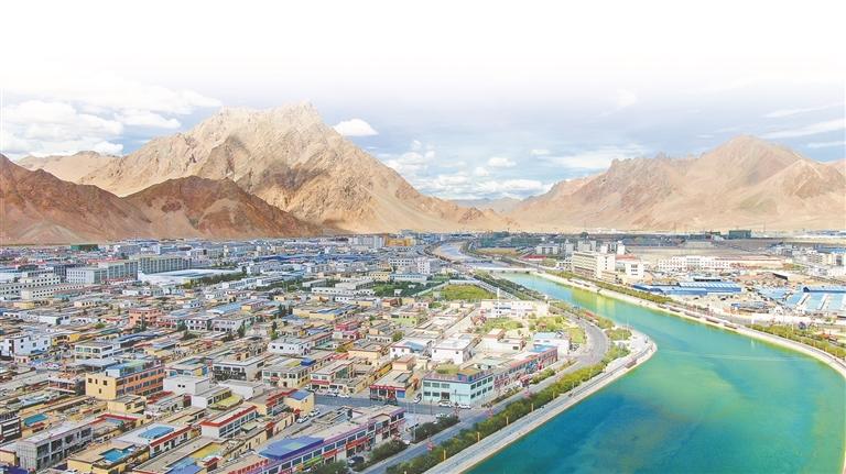 圖為綠意環(huán)繞的獅泉河鎮(zhèn)。 記者 洛桑旦增 達珍 永青 攝