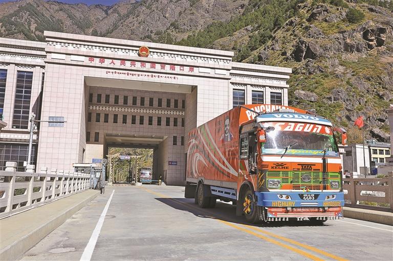 圖為十月二十九日上午,一輛滿載貨物的尼泊爾貨車即將駛離吉隆口岸。(資料圖片)記者 旦增蘭澤 通訊員 肖富貴 攝