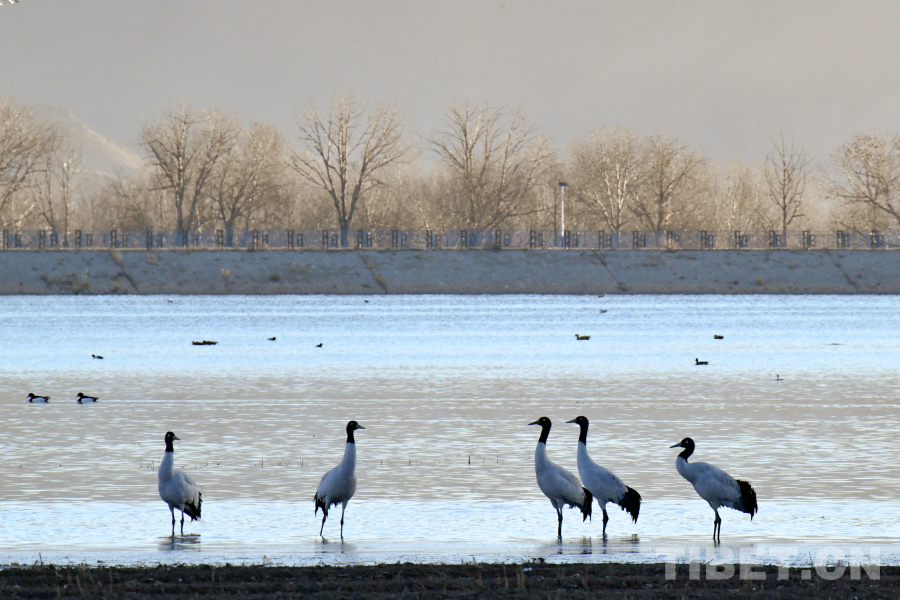 中國西藏網訊 清晨的拉薩林周,當一天中第一縷陽光剛剛照向大地之時,卡孜水庫里第一批早醒的黑頸鶴伴隨著鶴類特有的鳴叫,三五成群地開始起飛外出覓食,這是屬于冬日拉薩獨有的鶴舞美景。