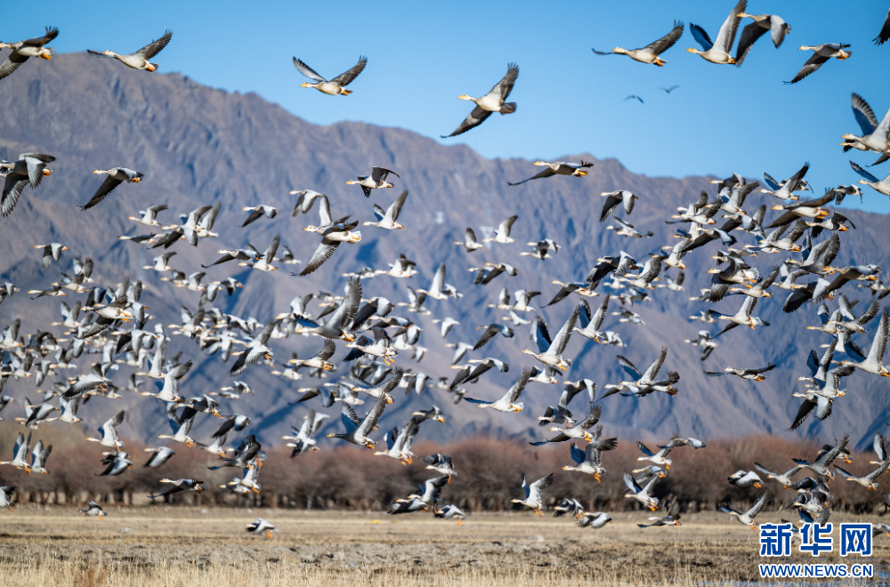 這是11月26日在西藏拉薩市林周縣境內(nèi)拍攝的斑頭雁。新華網(wǎng) 旦增努布 攝