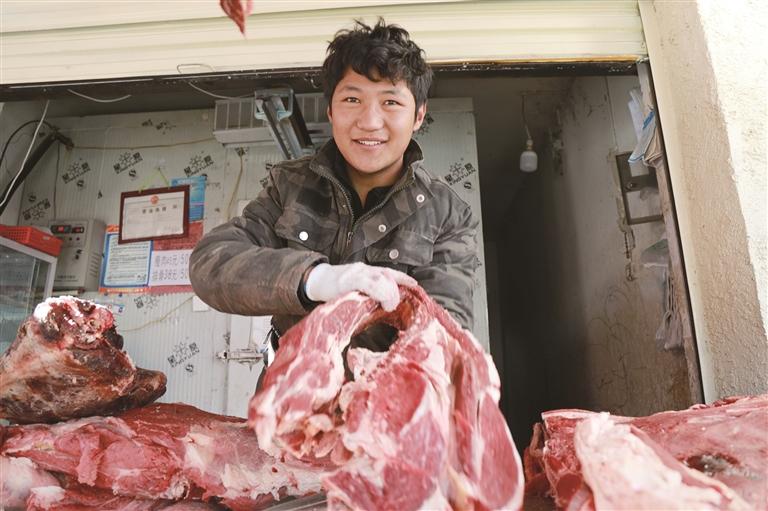 冬日的拉薩市墨竹工卡縣寒意漸濃,南京路的牛肉攤位卻一派熱火朝天的景象。新鮮的牦牛肉色澤紅潤(rùn)、肉質(zhì)緊實(shí),吸引著往來市民爭(zhēng)相選購。與以往不同的是,這些攤位的攤主大多是本地牧民,他們開著自家車輛,滿載著剛屠宰分割好的牛肉,從草場(chǎng)直奔市場(chǎng),在冬季消費(fèi)旺季里,靠著政策補(bǔ)貼與直銷模式,穩(wěn)穩(wěn)端牢增收“金飯碗”。