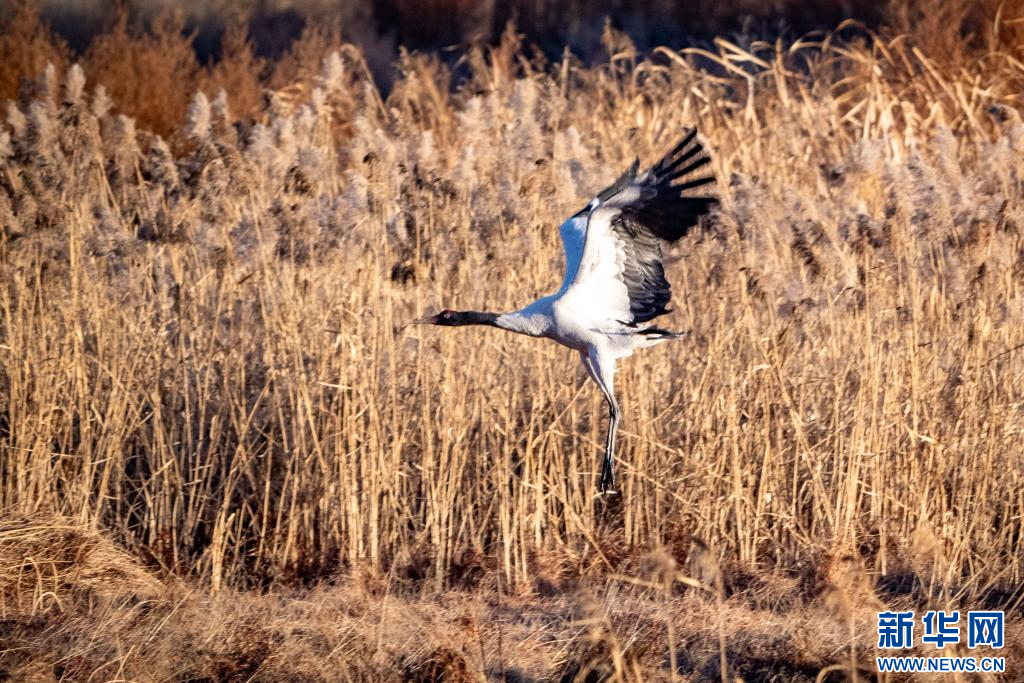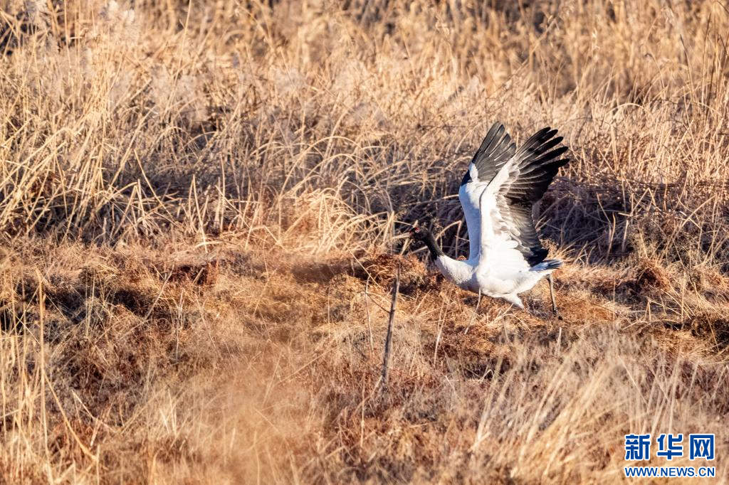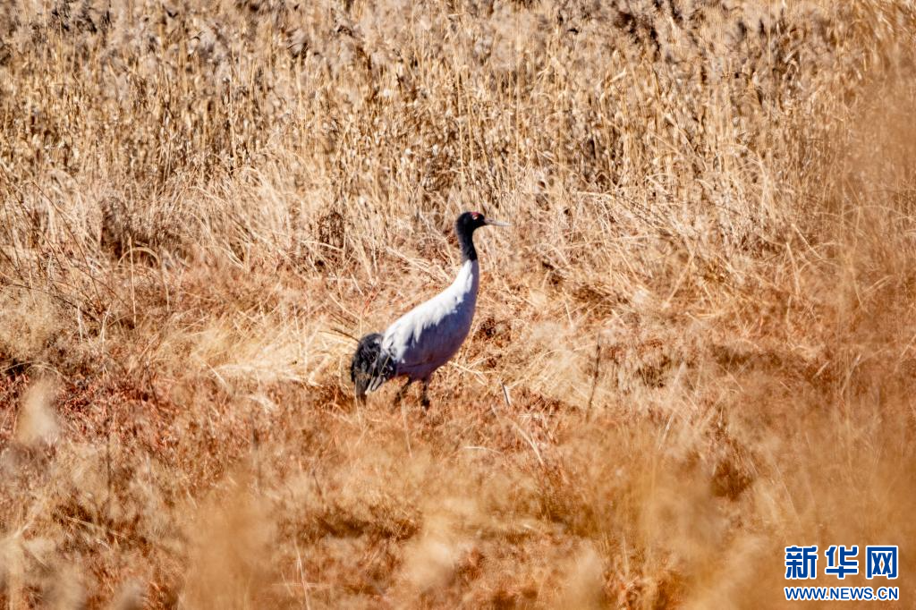 1月10日,在拉薩市拉魯濕地拍攝的黑頸鶴。新華網(wǎng) 旦增努布 攝