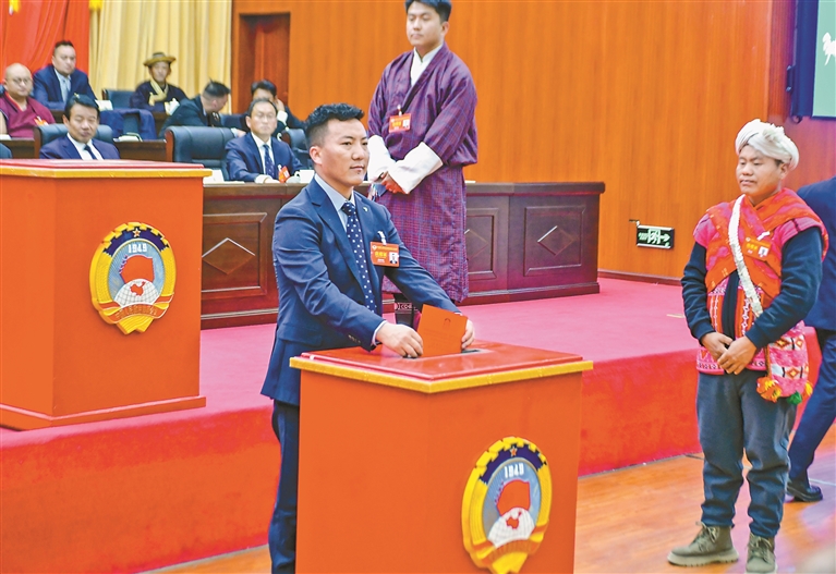 林芝市政協委員正在投票。