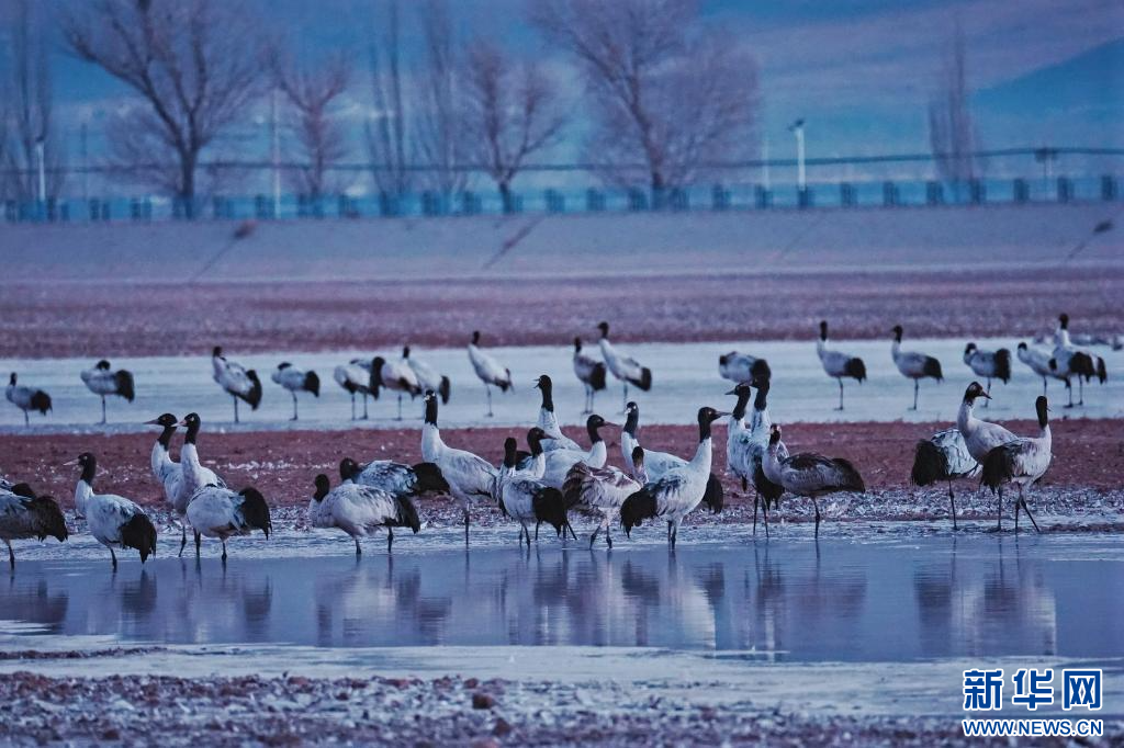 這是在拉薩市林周縣越冬的黑頸鶴。(拉薩市文化和旅游局供圖)