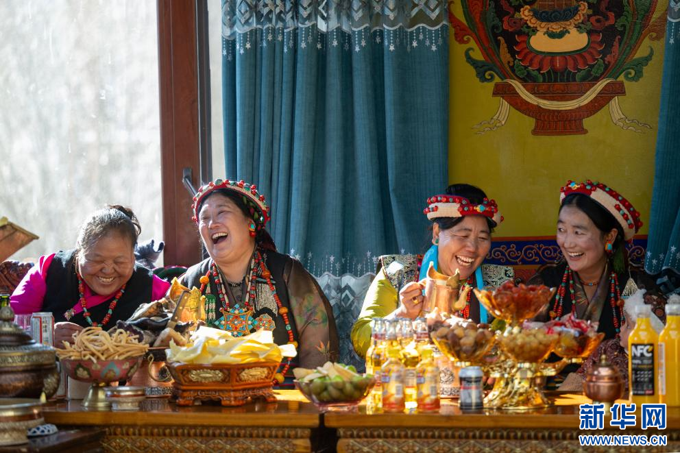 1月20日是藏歷12月2日,也是日喀則農(nóng)家新年初二。西藏自治區(qū)日喀則市桑珠孜區(qū)聶日雄鄉(xiāng)楚松村村民多吉旺堆一家及親朋好友相聚在家里,一起喝著青稞美酒,吃著香噴噴的牛羊肉,載歌載舞喜過(guò)農(nóng)家新年。