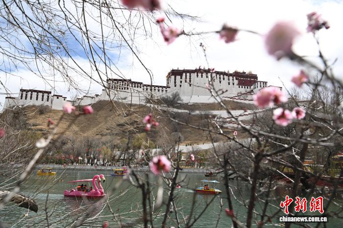 3月8日,西藏拉薩宗角祿康公園,桃花競相綻放。陽春三月,古城拉薩楊柳發(fā)芽、桃花初放,春意漸濃。中新社記者 貢嘎來松 攝