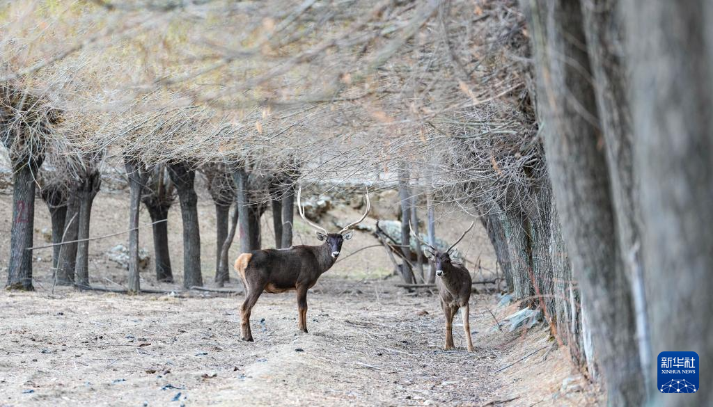 這是3月15日在西藏山南市乃東區(qū)結(jié)巴村拍攝的白唇鹿。新華社記者 晉美多吉 攝