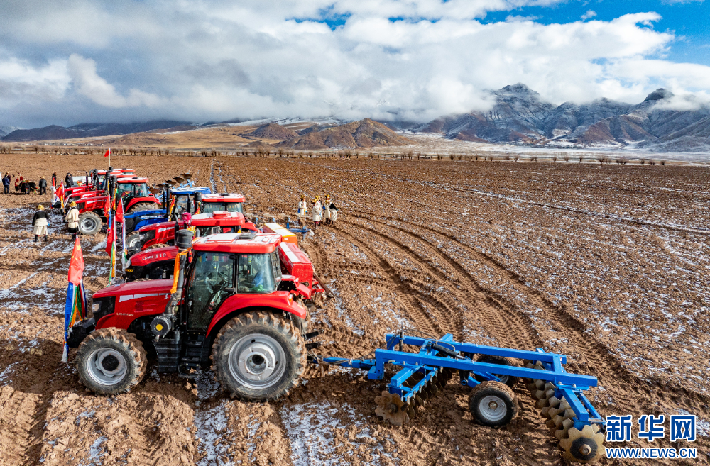 當(dāng)日,西藏自治區(qū)拉薩市林周縣春堆鄉(xiāng)春堆村群眾身著盛裝,按照傳統(tǒng)儀式,手捧青稞酒,在拉薩河谷舉行春耕儀式,播撒今春第一粒種子,祈福豐收。過(guò)去,“二牛抬杠”是當(dāng)?shù)貍鹘y(tǒng)的農(nóng)耕方式。如今,春堆村的農(nóng)機(jī)化率已達(dá)到100%。