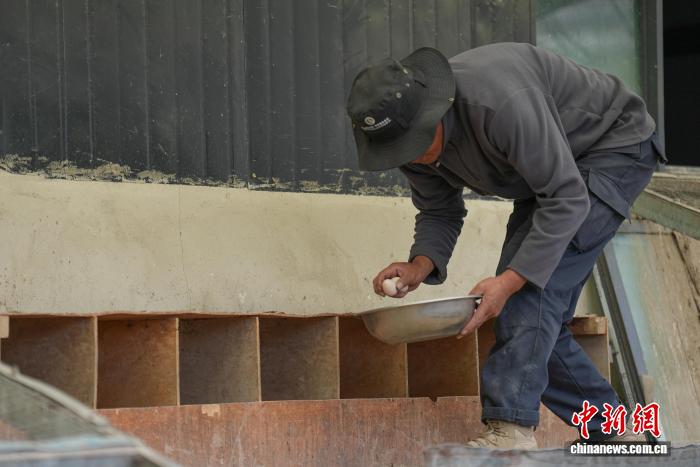 圖為合作社負(fù)責(zé)人次仁羅旦在收集雞蛋。貢確 攝
