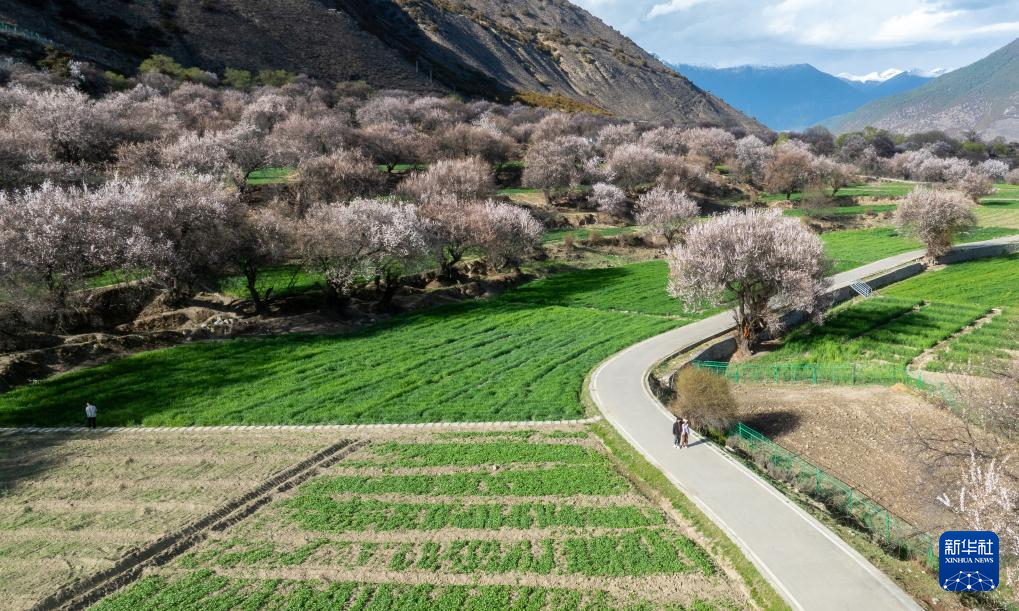 這是4月2日在林芝巴宜區(qū)朵當(dāng)村拍攝的桃林(無人機照片)。新華社記者 丁增尼達(dá) 攝