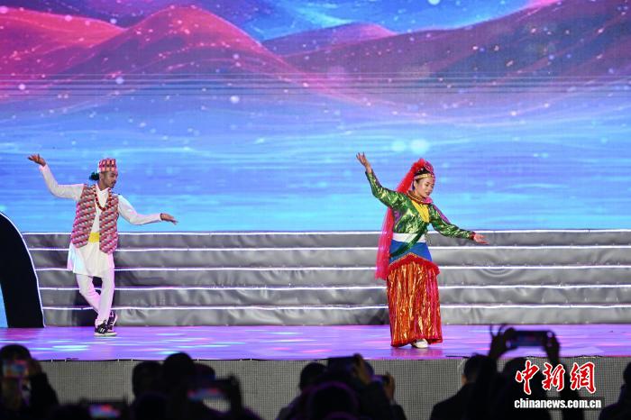 4月3日,西藏林芝市第二十三屆桃花旅游文化節(jié)開幕式文藝演出在林芝市工布公園圓滿舉行。本次演出以雪域江南自然風(fēng)光為底色,以工布民俗文化為內(nèi)核,通過精彩紛呈的文藝展演,全面展現(xiàn)林芝獨特的生態(tài)之美、人文之韻、發(fā)展之盛,奏響了文旅融合、民族團結(jié)、奮進發(fā)展的春日樂章。圖為開幕式的文藝表演尼泊爾民間歌舞《同心萬里》。中新社記者 貢嘎來松 攝