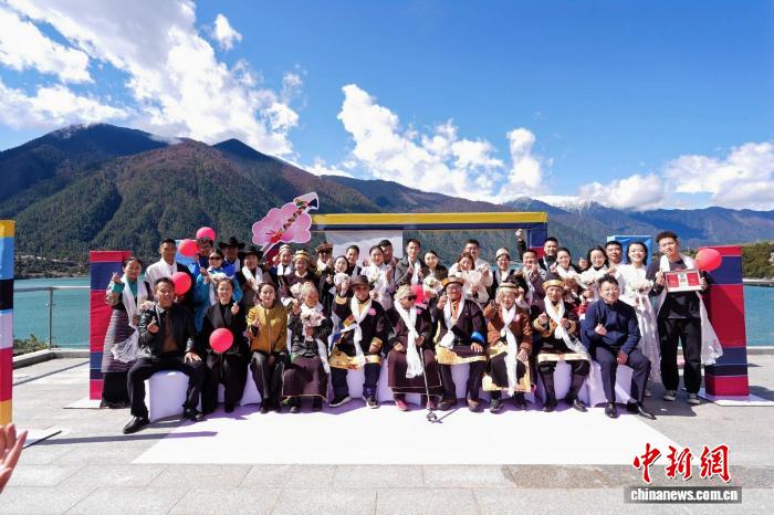 圖為新人們在活動現(xiàn)場留影。林芝市民政局供圖