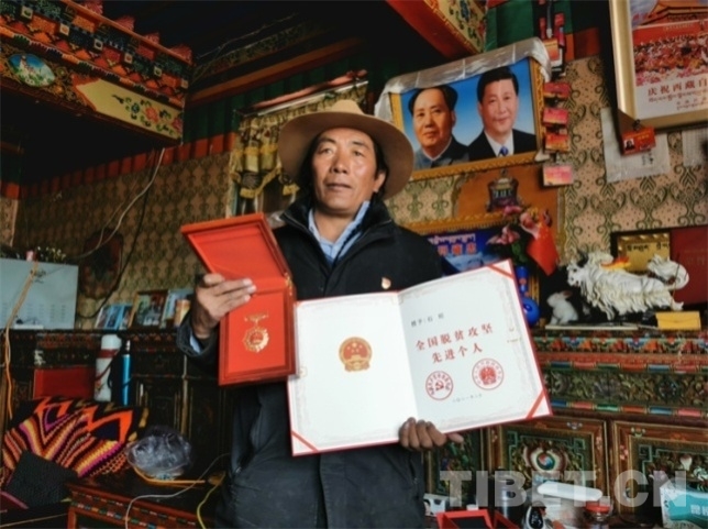 石旺展示全國脫貧攻堅先進個人榮譽證書。 德吉卓瑪 攝