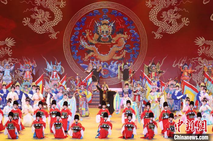 9月10日晚,2024江蘇中秋戲曲晚會(huì)在江蘇廣電荔枝大劇院上演,晚會(huì)緊扣“中秋”和“戲曲”兩大元素,將傳統(tǒng)節(jié)日內(nèi)涵與戲曲藝術(shù)融為一體,戲曲界各劇種名家陳少云、趙志剛、竺小招、周東亮、李奕潔、陳澄、李曉旭、施夏明等“梅花獎(jiǎng)”“紫金文化獎(jiǎng)?wù)隆薄拔娜A表演獎(jiǎng)”獲得者輪番登臺(tái),與近年來涌現(xiàn)出的優(yōu)秀青年演員同臺(tái)演出,凸顯戲曲文化的傳承與創(chuàng)新,為觀眾帶來一個(gè)流光溢彩的戲曲之夜。圖為學(xué)習(xí)戲曲的小戲迷登臺(tái)表演節(jié)目。中新社記者 泱波 攝