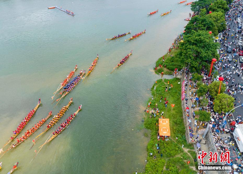 道州龍船賽起源宋代,2021年,道州龍船習(xí)俗列入國(guó)家級(jí)非物質(zhì)文化遺產(chǎn)代表性項(xiàng)目名錄。圖為賽事吸引172艘龍船、4816名民間運(yùn)動(dòng)員參賽。