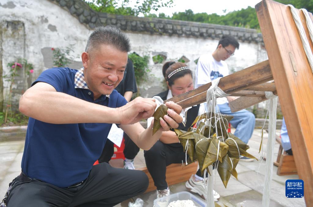 6月19日,村民參加四川省廣安市廣安區(qū)龍安鄉(xiāng)舉行的包粽子比賽。新華社發(fā)(張國盛 攝)