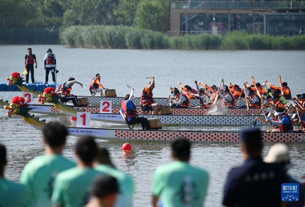 當日,2025年天津港保稅區(qū)龍舟大賽在天津空港經(jīng)濟區(qū)西湖舉行,轄區(qū)內(nèi)的20支企事業(yè)單位代表隊同臺競技,奮楫競渡,迎接端午節(jié)的到來。
