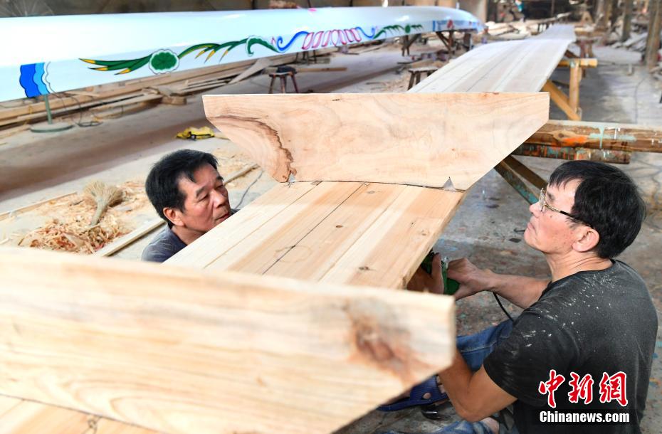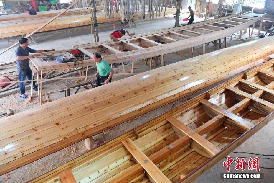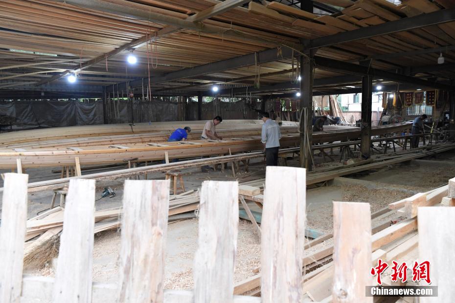 “世界龍舟看中國,中國龍舟看福州,福州龍舟看方莊?!蔽挥诟=ㄊ「V菔虚}侯縣的方莊村,是中國最大的龍舟制造村,有著七百多年制作龍舟的歷史。隨著端午節(jié)臨近,方莊村內(nèi)的龍舟制造廠里,工匠們正加班加點趕制端午節(jié)的龍舟訂單。據(jù)統(tǒng)計,目前該村每年能接到超過200艘龍舟的訂單,總產(chǎn)值約600萬元人民幣。圖為5月25日,在方莊村的方和勇龍舟廠里,師傅在趕制端午節(jié)的龍舟訂單。中新社記者 張斌 攝