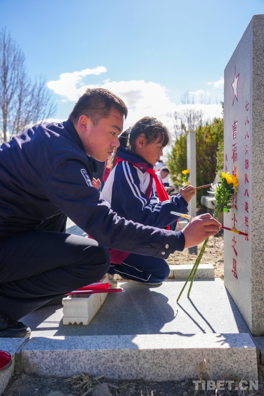 中國西藏網訊 清明前夕,西藏日喀則邊境管理支隊組織民警前往日喀則市烈士陵園開展祭掃活動。大家為墓碑描紅、清掃陵園,以赤誠之心致敬先烈。隨后,民警們一同參觀革命烈士紀念館,并為少先隊員宣講英烈事跡,讓紅色基因代代相傳,激勵警民賡續(xù)紅色血脈、砥礪奮勇前行。(中國西藏網 通訊員/葉軼 記者/德吉卓瑪)