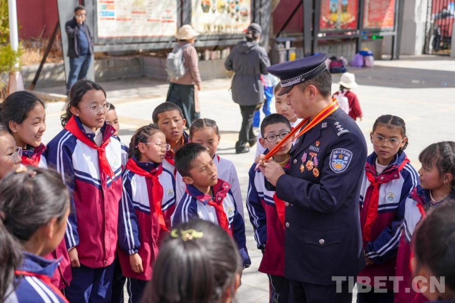 西藏日喀則邊境管理支隊民警現場為少先隊員宣講英烈事跡