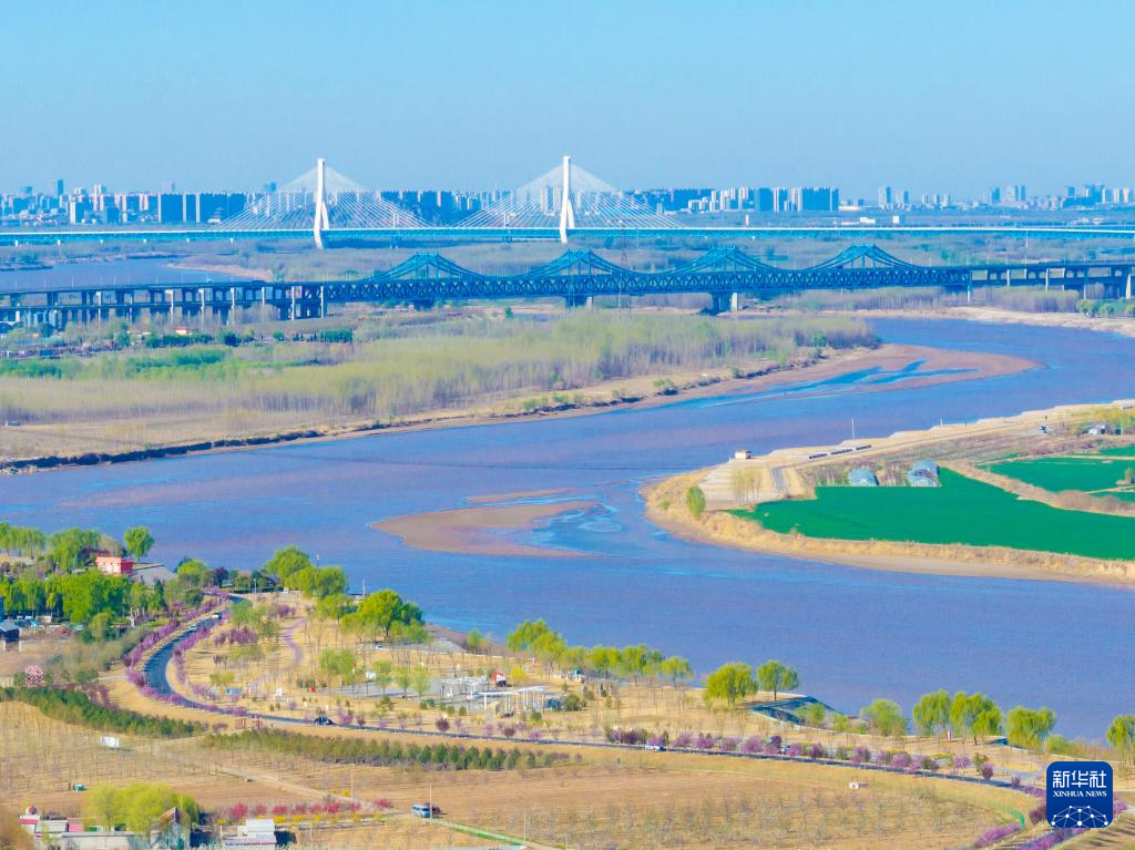 4月2日拍攝的黃河山東濟南段兩岸風(fēng)景(無人機照片)。