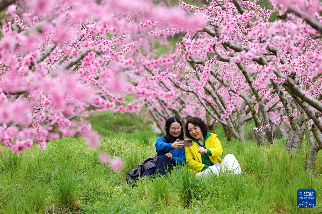 4月1日,游客在重慶市黔江區(qū)濯水鎮(zhèn)烏楊社區(qū)黃桃基地賞花游玩。