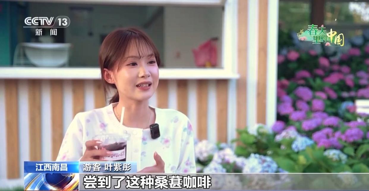 游客 葉紫彤嘗到了這種桑葚咖啡,還有桑葉冰激凌,都很美味,都是我們以前沒有嘗過的味道,我覺得很特別。