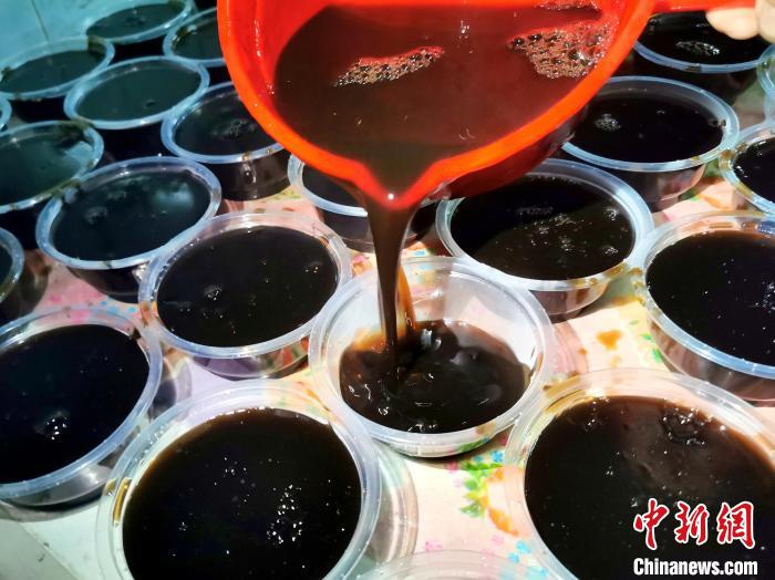 7月25日凌晨,廣東臺山市,剛煮好濾渣后的茯苓膏被逐一分裝。李曉春 攝