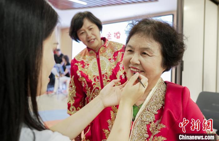 七夕將至,河北省邯鄲市老人走進(jìn)叢臺(tái)區(qū)光明橋街道天璽苑社區(qū),參加“七夕迎金婚 共創(chuàng)好家風(fēng)”慶典,回憶半個(gè)世紀(jì)的愛(ài)情。金婚慶典儀式經(jīng)過(guò)牽手入場(chǎng)、夫妻對(duì)拜、執(zhí)子之手、回憶往昔等環(huán)節(jié),見(jiàn)證了金婚夫妻們相濡以沫、互敬互愛(ài)的美滿婚姻。金婚老人結(jié)合親身經(jīng)歷,分享家風(fēng)家訓(xùn)及愛(ài)情故事,講述家庭幸福的秘訣,“曬”出婚姻保鮮的秘籍,分享婚姻的經(jīng)營(yíng)智慧。圖為8月6日,老人正在化妝。王倩倩 攝