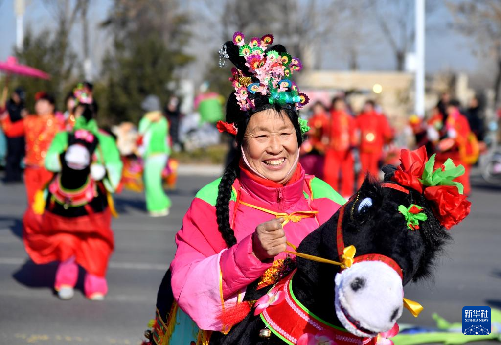 2月9日,河北省石家莊市元氏縣群眾表演“騎毛驢”。