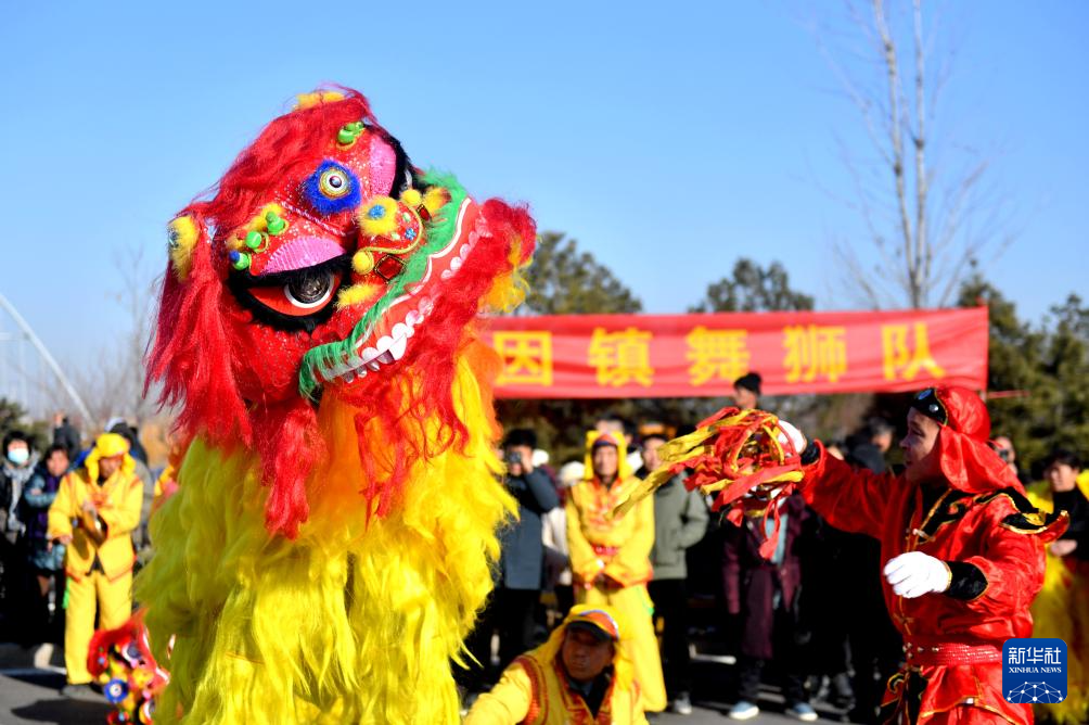 2月9日,河北省石家莊市元氏縣群眾表演舞獅。